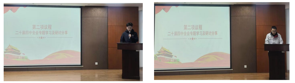 随后,两名党员同志作为代表分享了自己的学习心得体会。郝鹏程同志表示:“党的二十届四中全会描绘了以中国式现代化全面推进强国建设、民族复兴伟业的宏伟蓝图,为新时代新征程指明了前进方向,当前汽车产业正经历百年未有之大变局,电动化、智能化、网联化浪潮席卷全球,我们应重点做好两方面工作:一是完善产业生态, 推动汽车上下游协同发展;二是深化国际合作,提升中国汽车品牌全球竞争力,作为宁波检验中心的一员,自己要发挥桥梁纽带作用,助力企业把握发展主动权。”张星同志表示:“党的二十届四中全会专题研究进一步全面深化改革、推进中国式现代化问题,这是党中央从全局和战略高度作出的重大决策。作为一名预备党员,自己将以正式党员标准鞭策自己,把学习热情转化为提升党性、增强本领的实际行动。积极推进业务工作,虚心向同志们学习,立足本职岗位,勇于尝试创新,努力解决工作中的实际问题,为落实全会精神贡献宁检人的一份力量。”