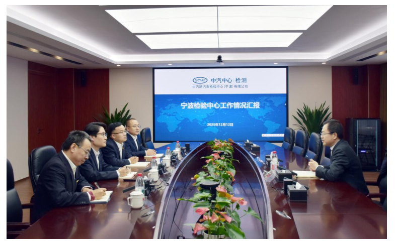 2025年12月12日,中汽中心党委委员、副总经理李洧到宁波检验中心调研指导工作。