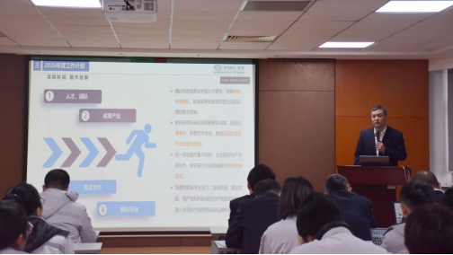 随后,会议聚焦公司高质量发展的核心引擎—科技创新,报告系统全面回顾了2025年度公司在科创领域的奋进历程与突破性进展。在科创体系建设上,完善了跨部门协同创新机制与科研管理制度;在创新能力构建上,以“技术攻关+标准构建+成果转化+人才培育”为核心定位构建科创能力新平台。同时,明确了2026年科研工作的核心方向与关键策略,重点围绕核心技术攻坚,锚定行业前沿与卡脖子领域集中发力,以创新驱动公司实现高质量、可持续发展。